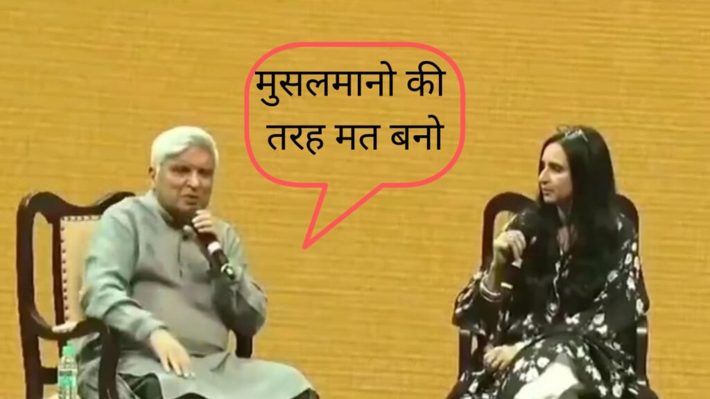 जावेद अख्तर कहते है की शोले फिल्म में एक सीन है जहां धर्मेंद्र एक शिवजी की मूर्ति के पीछे छिप जाते हैं और हेमा मालिनी से शिवजी बनकर बात करते हैं। उस सीन में हेमा मालिनी को ऐसा लगता है जैसे स्वयं शिवजी उनसे बात कर रहे हैं। इसी सीन का हवाला देते हुए वह कहते हैं की क्या आज के समय में इस तरह का सीन करना संभव है? नहीं, और वह स्वयं इस सीन को नहीं लिखने की बात कर रहे हैं। उसके बाद वह कहते हैं की क्या उस वक़्त 1975 में हिन्दू नहीं हुआ करते थे? और अगर थे तो क्या वो धार्मिक नहीं थे? उसके बाद वह राजू हिरानी का नाम लेते हुए कहते हैं की वह पूना किसी ऐसे ही प्रोग्राम में गए थे जहां पर हज़ारों की भीड़ थी और उन्होंने ये बात कही की मुस्लिमों की तरह मत बनो। बल्कि मुसलमानो को अपनी तरह बना लो। क्योंकि आज के समय में हिन्दू भी मुस्लिमों की तरह बनते जा रहे हैं। जावेद साहब ने आगे कहा की इस देश की ताकत क्या है? ऐसा क्या है जो हमें सबसे अलग बनाता है? हमारे पास लोकतंत्र क्यों है? ऐसा लोकतंत्र जो आपके मेडिटेरेनियन समुद्र की सीमा तक देखने को नहीं मिलेगा।